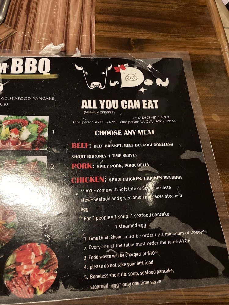 Customers rave about the tender meats and flavorful marinades, with the Boneless Short Rib receiving high praise. The all-you-can-eat option is a hit for large groups, offering a variety of meats, seafood pancake, soups, and sides. Service is attentive and the atmosphere is cozy.
